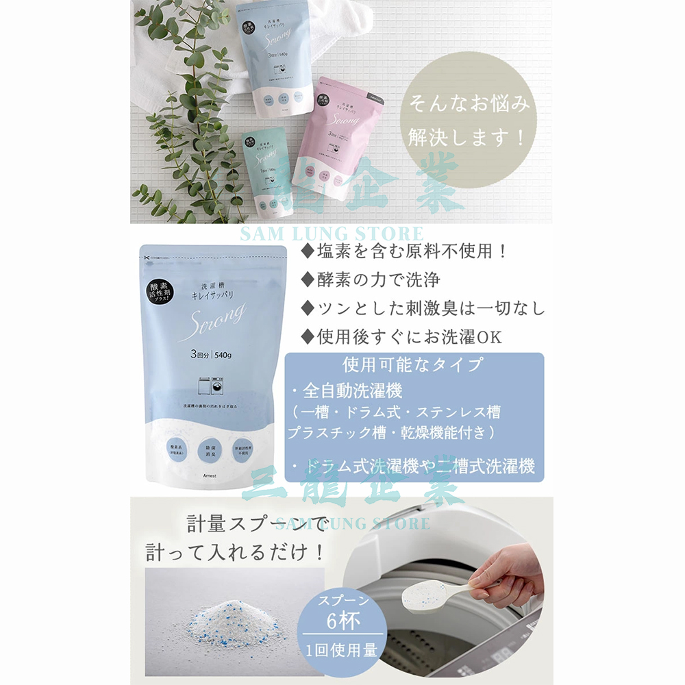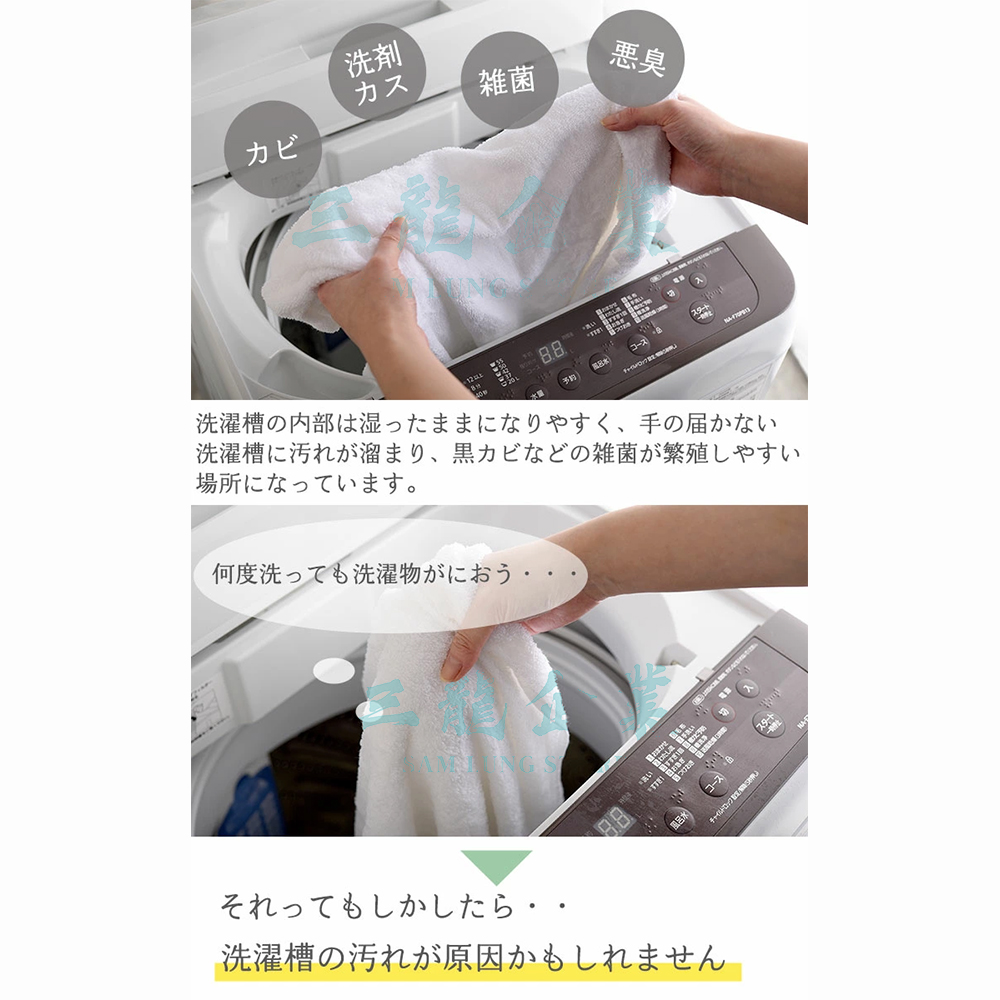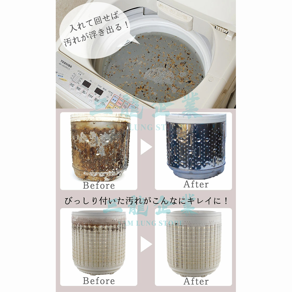 - 日本專利技術配方:採用高效能除菌成分,能在不損害洗衣槽金屬表面的情況下,瓦解頑固污垢。