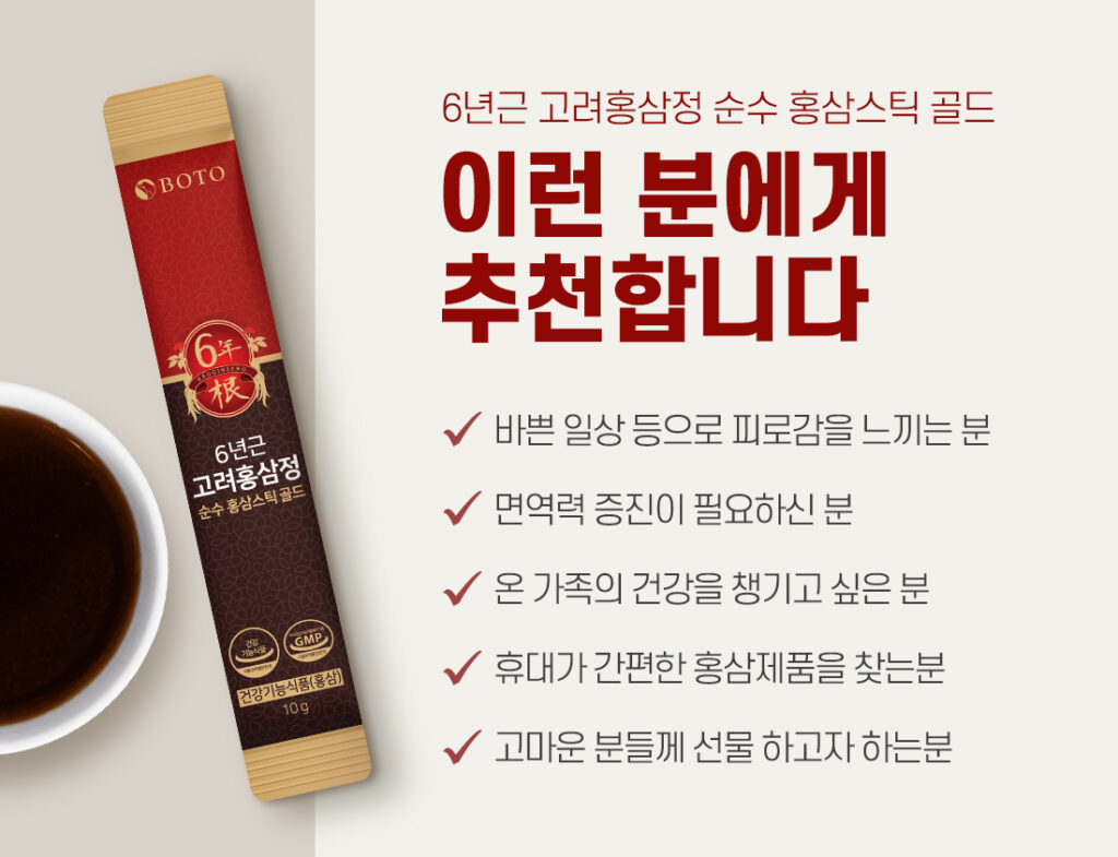 近年愈來愈多人注重日常保健,希望提升精神、改善疲勞、增強體力。韓國高麗紅蔘一直被視為東方珍貴的滋補素材,而來自韓國的 6 年根高麗紅蔘濃縮液隨手飲,以便攜包裝呈現,無論工作繁忙、經常外出、需要補氣養身人士都非常適合。
