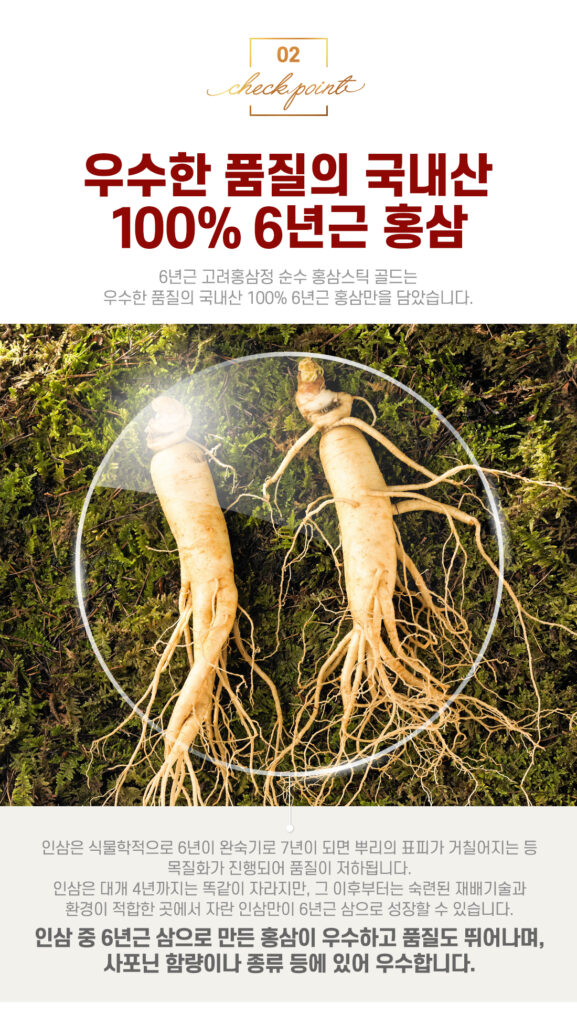 韓國傳統認為 6 年根人蔘植株營養最為成熟,內含皂苷(Ginsenosides)含量較高,補氣與調理體質效果更佳。 - 高濃縮配方,10g 細包易吸收